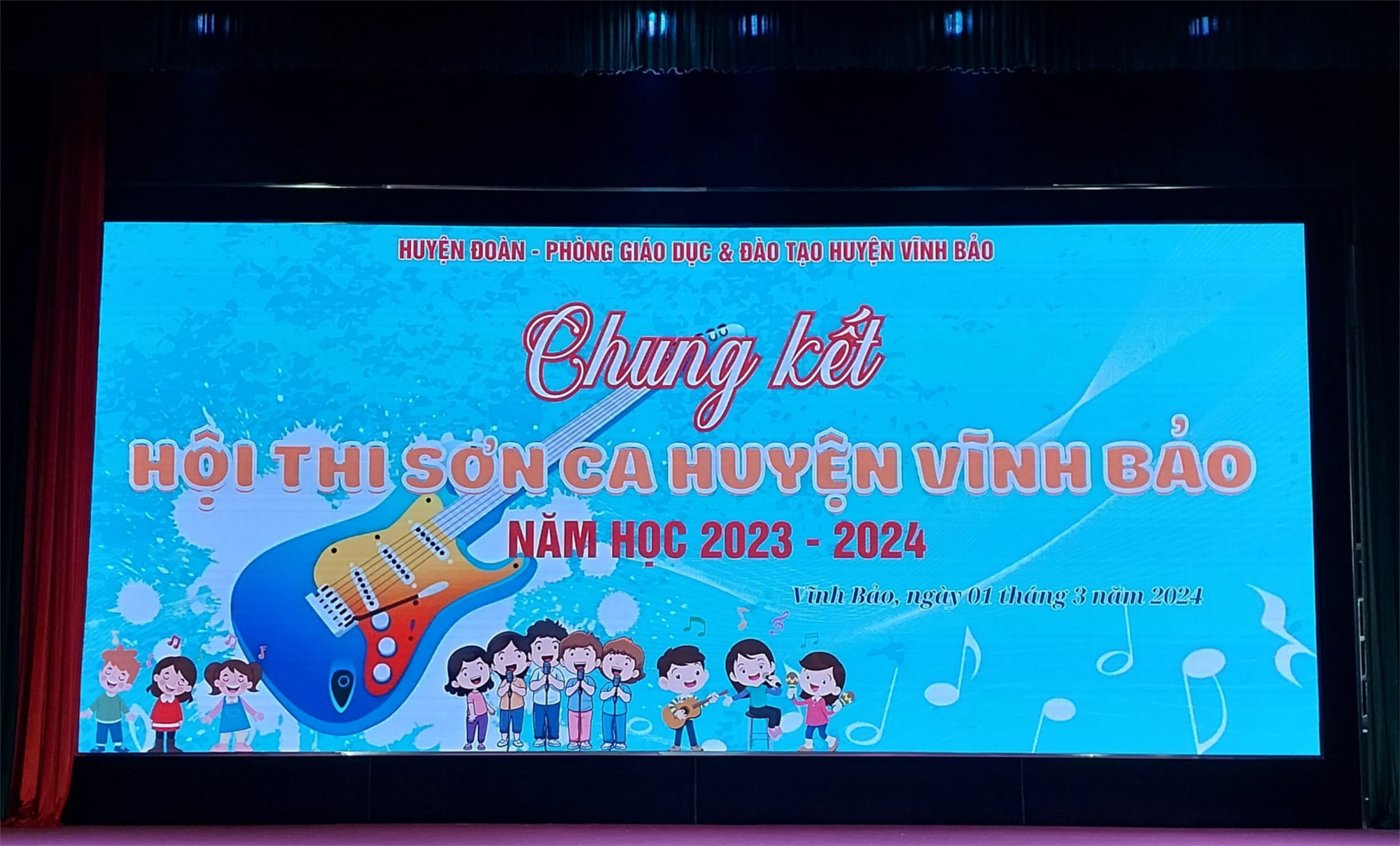 Thực hiện Chương trình công tác Đội và phong trào thiếu nhi năm học 2023-2024, Kế hoạch số 04-KH/LN ngày 22/01/2024 của Huyện đoàn - Phòng Giáo dục và Đào tạo về việc tổ chức Hội thi “Sơn ca huyện Vĩnh Bảo năm học 2023-2024”. Sáng 01/3/2024 Ban Thường vụ Huyện đoàn - Phòng Giáo dục và Đào tạo huyện Vĩnh Bảo tổ chức Vòng chung kết Hội thi Sơn ca huyện Vĩnh Bảo năm học 2023-2024.