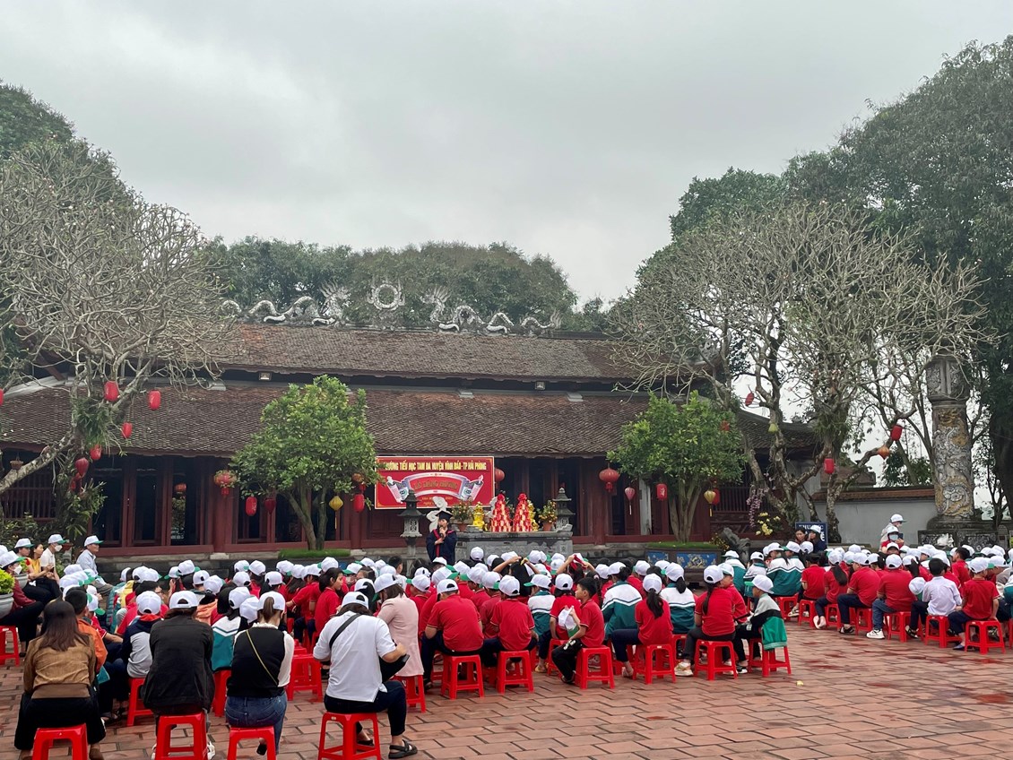 Điểm đến đầu tiên của thầy cô và các em là Đền thờ Trạng nguyên Trần Tất Văn.