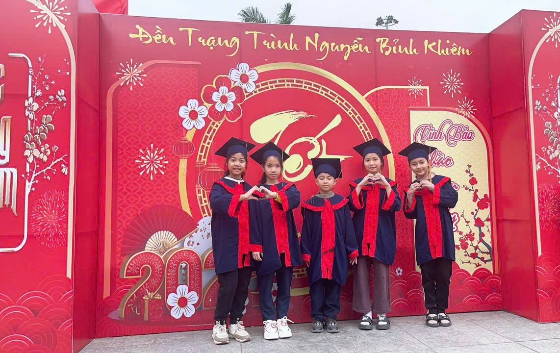 Sáng ngày 5 tết cô và trò trường TH Tam Đa tham gia viết chữ thư pháp, khai bút đầu xuân Ất Tỵ 2025