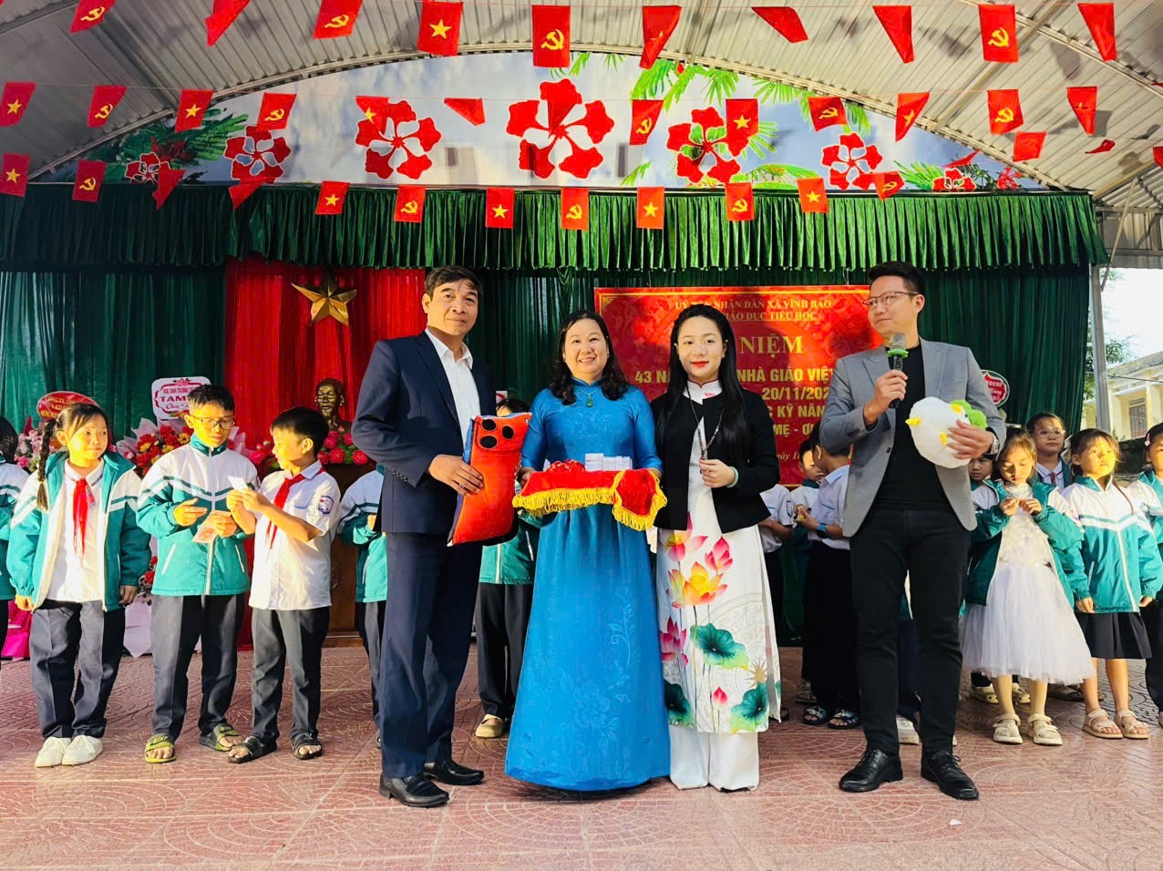 Về dự với chương trình có các vị đại biểu là: Lãnh đạo xã Vĩnh Bảo, BGH các trường Tiểu học, BCH hội CGC, Ban ĐDCMHS, các bậc phụ huynh và 364 em HS của trường.
