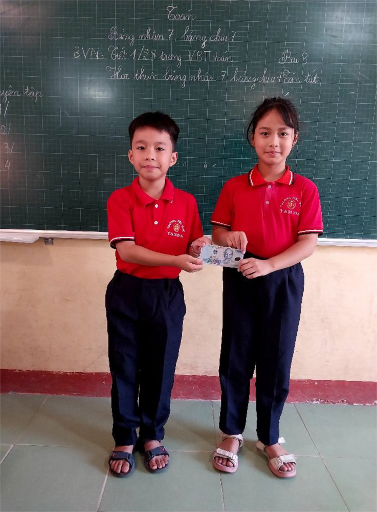 Việc làm của em Yến Nhi _ 2A2, em Kỳ Thiên _ 3A2, em Vũ Minh Khang 4A1, em Đỗ Bảo Nguyên 5A1 nhặt được tiền trong sân trường. Các em đã nhanh chóng mang số tiền nhặt được báo với cô và gửi cô giáo để trả lại người bị mất. tuy nhỏ bé nhưng có ý nghĩa và sức lan tỏa vô cùng to lớn, là hành động cần được khen ngợi, biểu dương, nhân rộng. Bởi các em chính là tấm gương sáng cho các bạn học sinh và mọi người học tập noi theo.